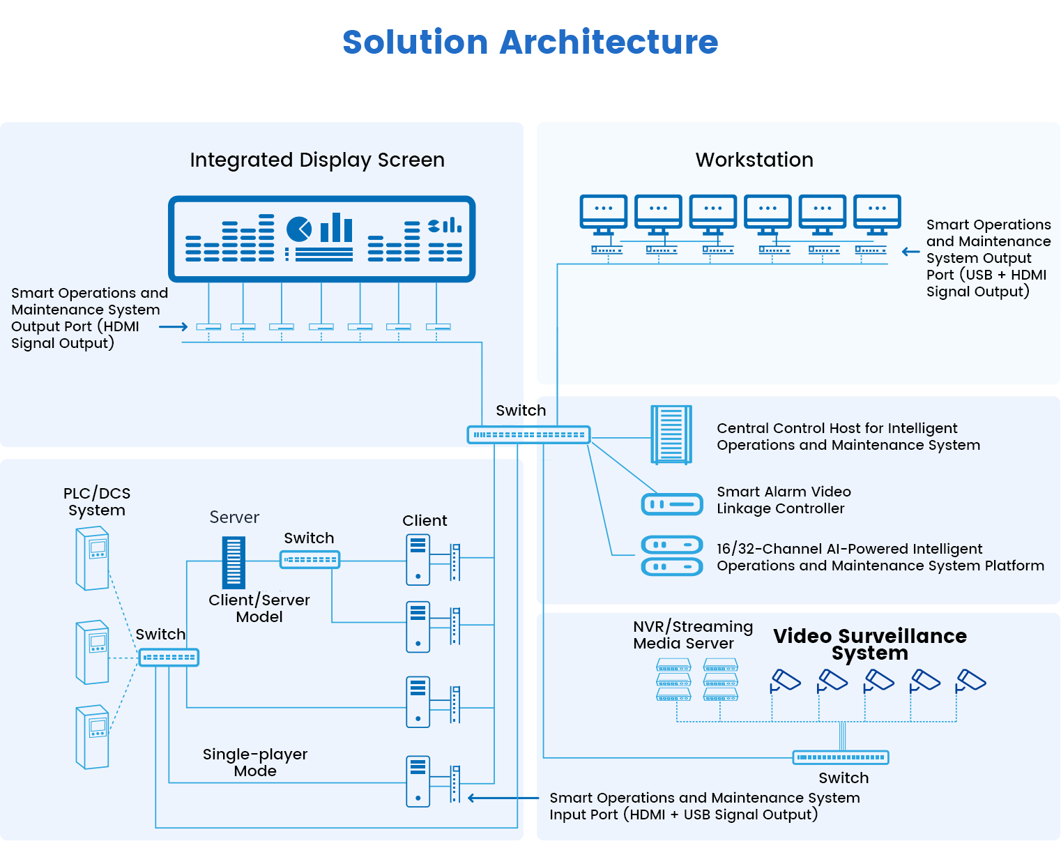 This system is an information management solution designed for manufacturing and other production enterprises. It aims to monitor various parameters and equipment status in real time during production, promptly identifying and issuing early warnings for potential production anomalies, equipment failures, and safety risks. By integrating sensors, PLCs, DCS systems, operator collaboration platforms, display devices, and recording/broadcasting systems, the platform collects real-time production line data—including equipment operation status, process parameters, and environmental conditions. Upon detecting deviations from preset thresholds, it immediately triggers alerts, automatically displays video surveillance footage of the corresponding fault location, and generates incident recordings. This facilitates precise post-incident identification of the exact time of occurrence and monitoring conditions before and after the event, fundamentally preventing recurrence of errors. Multi-system coordination addresses the fragmented and limited nature of the entire process from fault occurrence to post-incident analysis.