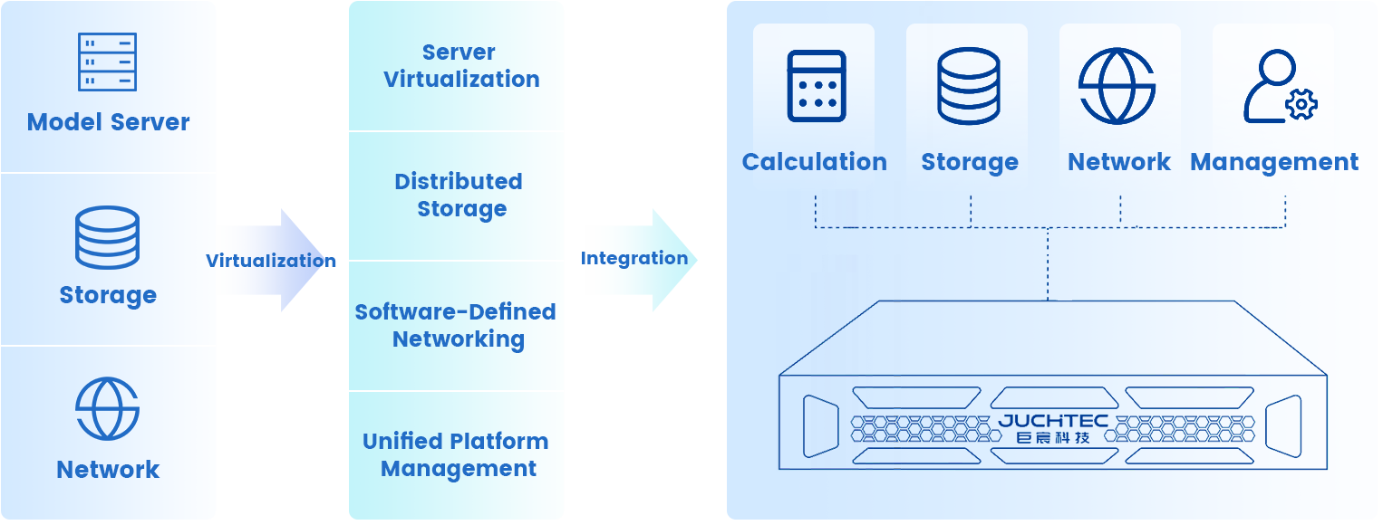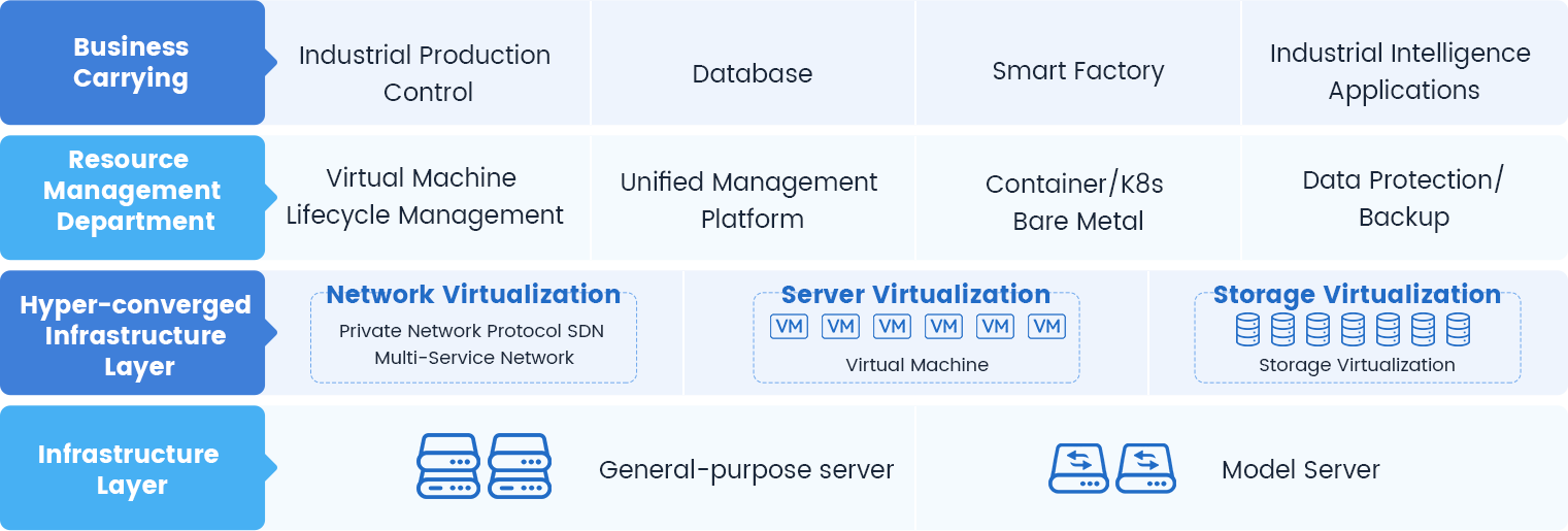 Juchen Industrial Hyper-Converged System (abbreviated as Juchen OS) provides industrial enterprises with a high-performance, highly available, efficient, and easy-to-install IT infrastructure platform. It is deeply compatible with domestic innovation technologies, supporting domestic chips such as HiSilicon and Kunpeng, and compatible with operating systems like Kylin and UnionTech, as well as database middleware including Dameng and Renmin Jinkuang, establishing a fully autonomous and controllable system. Currently deployed across numerous industrial scenarios—including industrial data centers, centralized control centers, Level 1/2/3 industrial production control management operations, and industrial internet platforms—it supports end-to-end domestic solutions to meet security requirements while boosting IT resource utilization by over 40%. This comprehensive, one-stop cloud migration solution empowers industrial enterprises' digital transformation and accelerates industry-wide intelligent development.